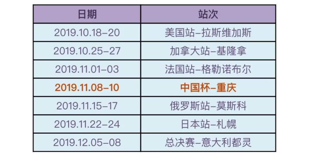 2019/20赛季世界花样滑冰大奖赛赛程